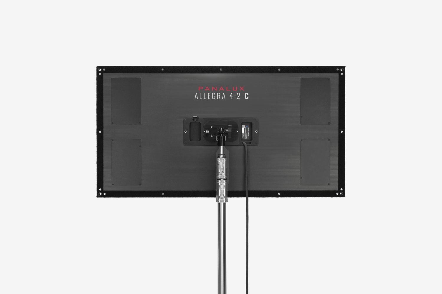 The Panalux Allegra 4:2 C full-colour LED head incorporates a proprietary light engine that produces a broad-spectrum wide CCT range of 1,600-20,000K with extremely fine colour-rendering across a super-wide gamut, ensuring excellent skin-tone rendering and enabling a wide range of LEE Filters gel emulations. The head operates in conjunction with the Panalux Allegra C DMX LED Control, which features an onboard power supply, a simple, intuitive, fully featured user interface, and full connectivity options including native LumenRadio CRMX.