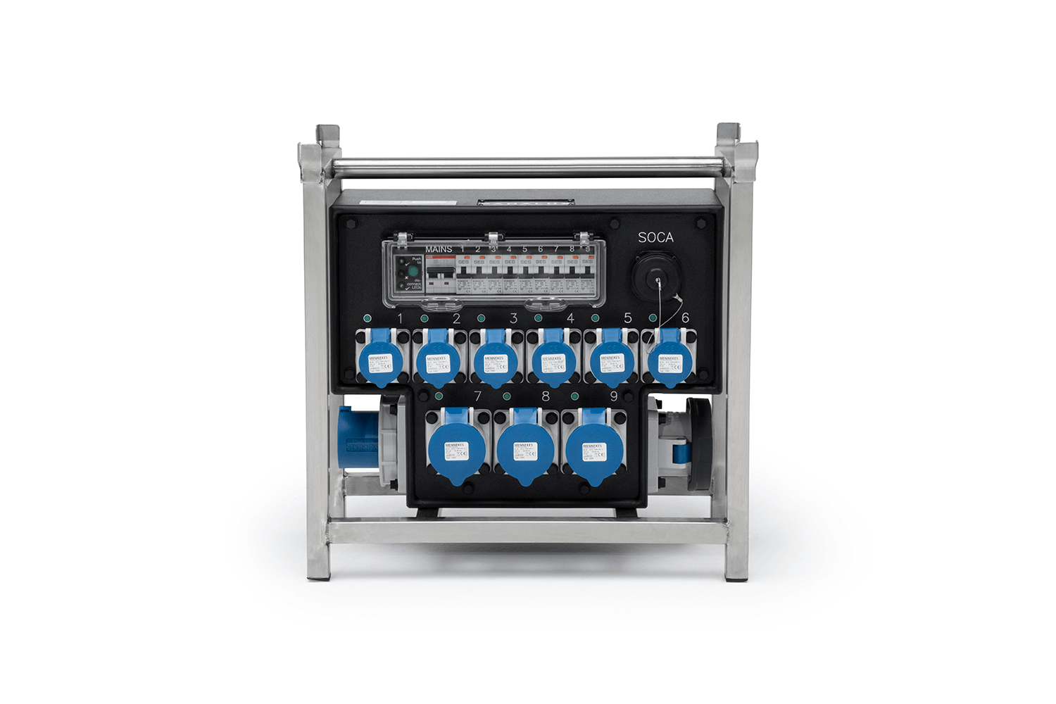 Featuring a field distribution unit (FDU) infrastructure, this rugged, reliable, custom-designed unit splits power into six 16A, three 32A outputs and a single Socapex output.
